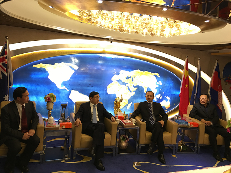 常州市委副書記、市長(zhǎng)費(fèi)高雲(yún)(左二)與萬(wàn)國(guó)集團(tuán)董事會(huì)主席劉雅煌(右二)作深入交流