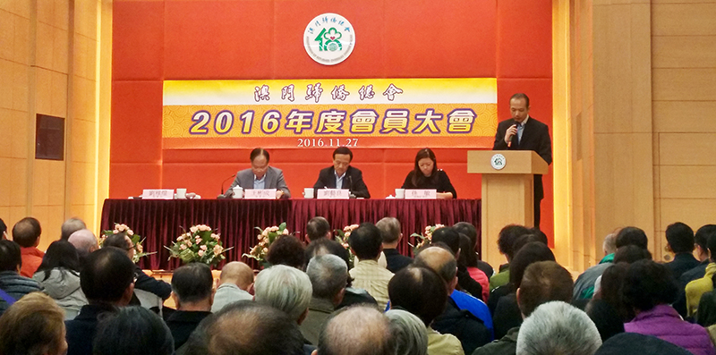 澳門歸僑總會(huì)舉辦2016年度會(huì)員大會(huì),監(jiān)事長(zhǎng)劉雅煌(右一)作監(jiān)事會(huì)工作報(bào)告