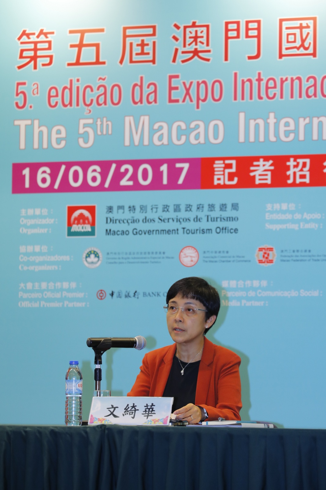 澳門旅遊局局長文綺華在記者會上致辭