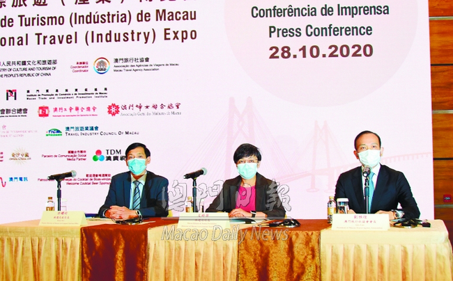 大會昨下午三時於澳門旅遊塔會展中心四樓舉行新聞發(fā)佈會。旅遊局長文綺華、副局長許耀明及澳門旅行社協(xié)會會長劉雅煌等出席。