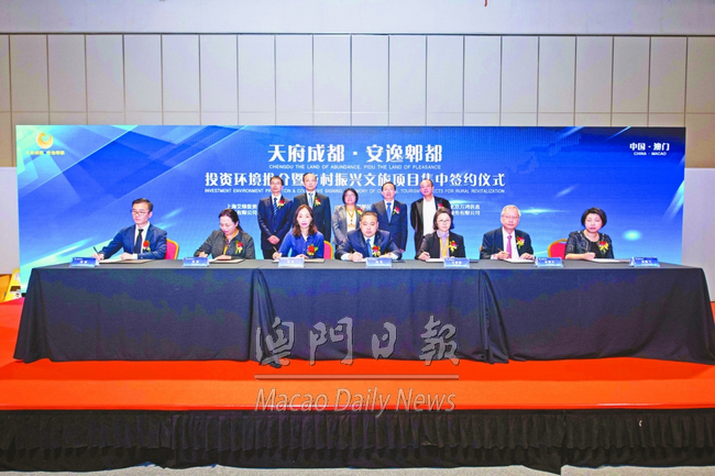 成都市郫都區(qū)“天府成都——安逸郫都”澳門第八屆旅博會投資環(huán)境推介暨鄉(xiāng)村振興文旅項(xiàng)目集中簽約儀式昨舉行。共有五個落戶郫都的鄉(xiāng)村振興文旅項(xiàng)目進(jìn)行簽約,共投資一百五十三億元人民幣。