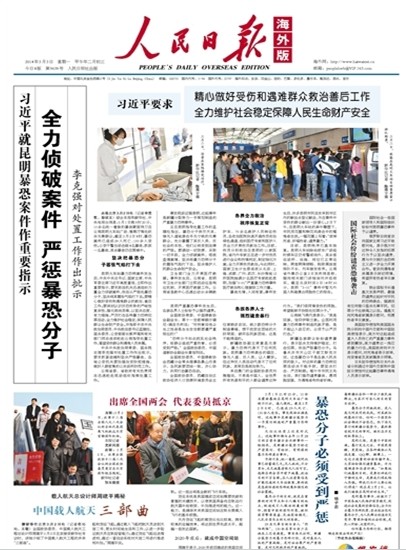 《人民日報(bào)》頭條:劉雅煌譴責(zé)昆明事件暴徒
