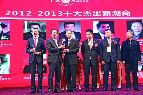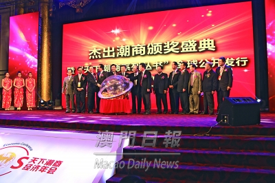 由天下潮商傳媒集團、中國僑聯(lián)海外聯(lián)誼部、北京潮人商會及香港潮州商會、澳門潮州同鄉(xiāng)會、澳洲潮州同鄉(xiāng)會、泰國華人青年商會聯(lián)合主辦的"二○一三天下潮商經(jīng)濟年會"於昨日在北京舉行。主辦單位前晚在北京飯店金色大廳舉行歡迎晚宴及傑出潮商頒奬盛典。