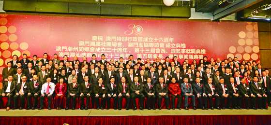 澳門潮州同鄉(xiāng)會、潮汕總商會、潮屬社團總會、潮協(xié)聯(lián)誼會理監(jiān)事與嘉賓合影