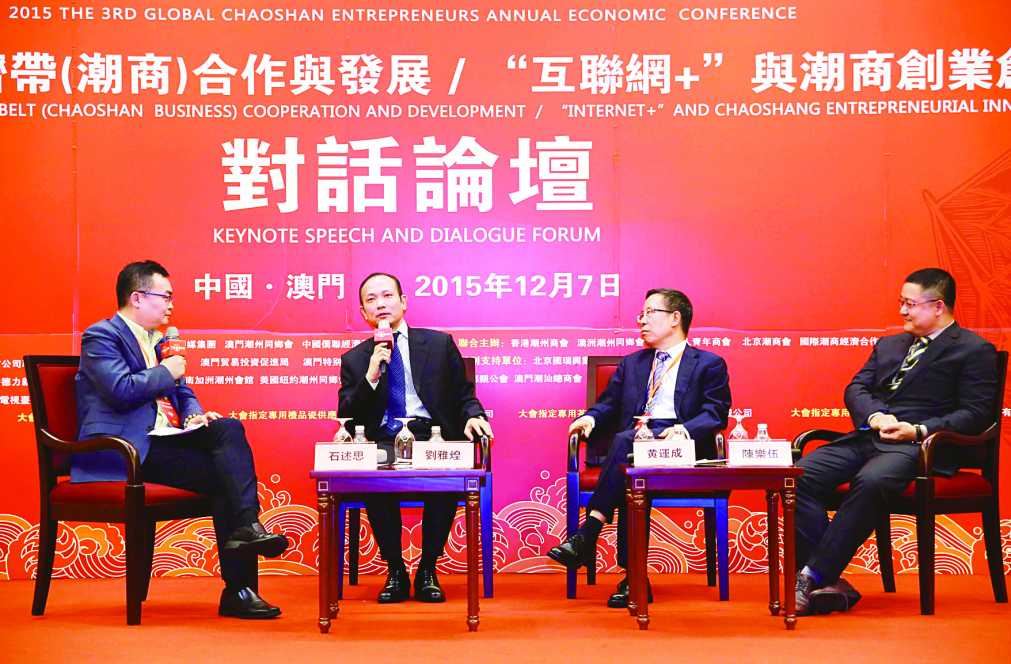昨日下午兩點(diǎn)半假威尼斯人舉行的天下潮商經(jīng)濟(jì)年會對話論壇二:“絲綢之路經(jīng)濟(jì)帶(潮商)合作與發(fā)展”上,劉雅煌表示,全球有非常多的潮商以外的聯(lián)動(dòng),跟當(dāng)?shù)氐恼?、各個(gè)族群、各個(gè)階層都有密切關(guān)係,發(fā)揮三千萬潮汕外延作用。