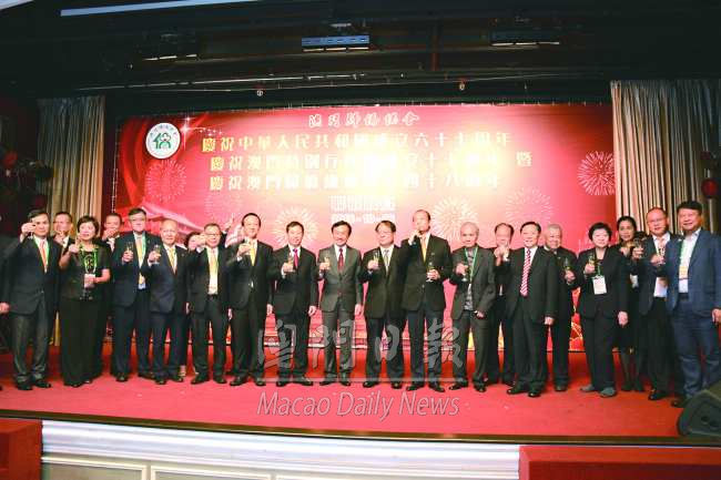 【本報消息】歸僑總會慶祝國慶六十七周年、特區(qū)成立十七周年暨該會成立四十八周年會慶聯(lián)歡宴會,昨晚七時半假萬豪軒酒家舉行。社文司司長譚俊榮、中聯(lián)辦副主任陳斯喜及外交公署副特派員潘雲(yún)東等到賀。
