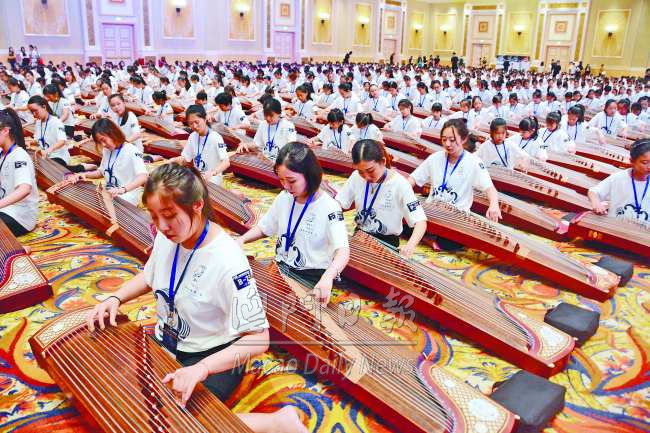 澳門創(chuàng)意產(chǎn)業(yè)協(xié)會、上海民族樂器一廠、嶺南文化藝術(shù)交流促進(jìn)會合辦的“盛世華箏 • 首屆澳門國際古箏音樂節(jié)”昨日假澳門喜來登金沙城中心酒店五樓喀什廳開幕,邀請世界各地古箏愛好者同臺演奏,最終有二千五百二十人挑戰(zhàn)成功,打破世界健力士紀(jì)錄。