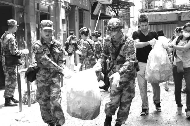 千名駐澳部隊(duì)官兵接獲指令便立刻趕往重災(zāi)區(qū)協(xié)助市民救災(zāi),經(jīng)過(guò)連續(xù)三天三夜的高效工作,解放軍已完成本澳11個(gè)區(qū)域的災(zāi)後清理任務(wù),累計(jì)面積約107.6萬(wàn)平方米,運(yùn)送垃圾700餘車。這些在澳門安定繁榮時(shí)不易看到的身影,卻在澳門危難之時(shí)挺身而出、義無(wú)反顧,讓市民更堅(jiān)定了戰(zhàn)勝風(fēng)災(zāi)的信心。