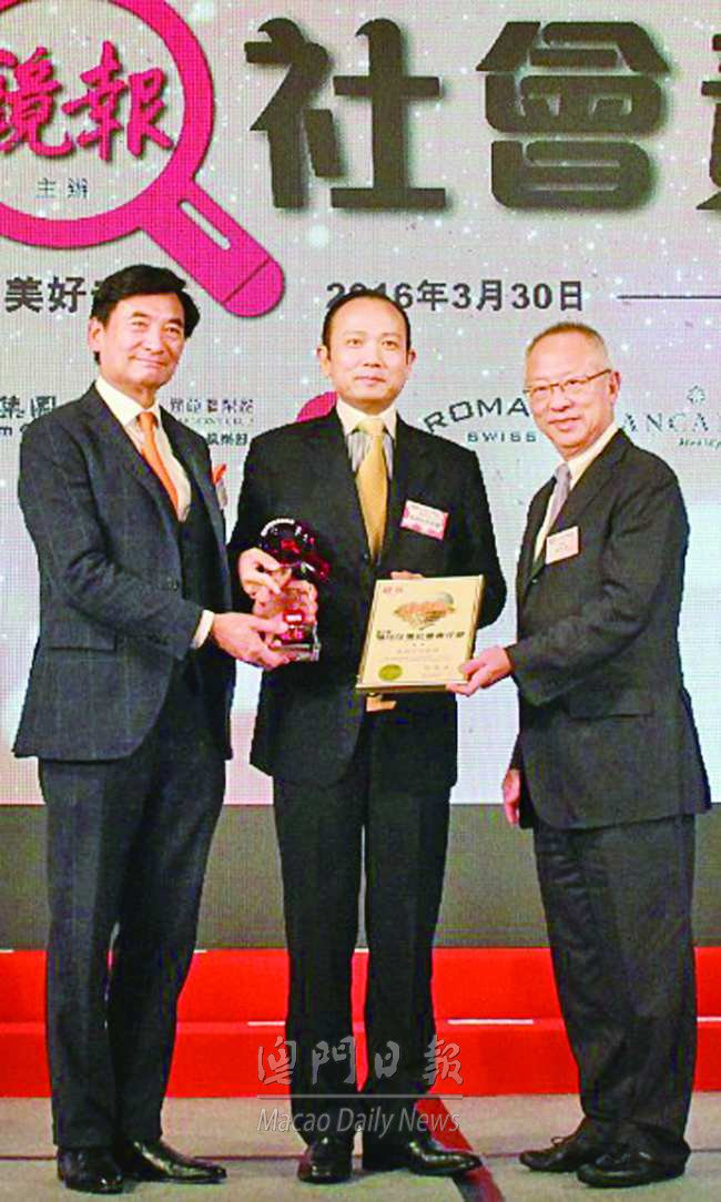 【本報消息】由鏡報主辦的“第五屆兩岸四地傑出企業(yè)社會責任獎頒獎典禮”,日前假尖沙咀唯港薈酒店宴會廳舉行,萬國控股集團獲頒“傑出企業(yè)社會責任獎”,澳區(qū)全國政協(xié)委員、集團主席劉雅煌感謝主辦單位授予獎項,指未來會以此為新起點,以高度的社會責任感回饋社會。