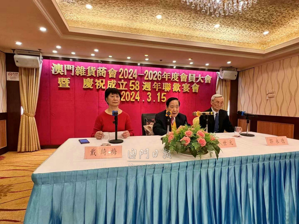 澳門(mén)雜貨商會(huì)會(huì)員大會(huì)由創(chuàng)會(huì)會(huì)長(zhǎng)許世元主持,副會(huì)長(zhǎng)郭永德作會(huì)務(wù)報(bào)告,副理事長(zhǎng)戴綺梅作財(cái)務(wù)報(bào)告。許世元向大會(huì)提出新一屆會(huì)長(zhǎng)、理監(jiān)事推選名單,並向大會(huì)建議自2024年3月份開(kāi)始,會(huì)員免交會(huì)費(fèi),在每三年換屆舉行會(huì)員大會(huì)時(shí),會(huì)員應(yīng)自由贊助經(jīng)費(fèi)。