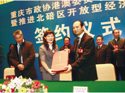 重慶市政協(xié)三屆三次會議圓滿閉幕。會議期間,為積極響應(yīng)重慶市委關(guān)於市政協(xié)委員助推區(qū)縣經(jīng)濟社會發(fā)展的號召,港澳臺僑外事委員會副主任、澳門萬國控股集團主席劉雅煌代表重慶市政協(xié)港澳臺僑外事委員會與重慶市北碚區(qū)政府簽署了《共同推進北碚區(qū)開放型經(jīng)濟發(fā)展合作備忘錄》,共同推進北碚區(qū)開放性經(jīng)濟跨越式發(fā)展。澳區(qū)重慶市政協(xié)委員徐偉坤、李炳康、袁松山、邱金海、曾藝、朱鐵能等出席了簽約儀式。